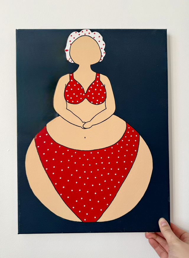 Description : réalisation d’une “Nana”, comme les célèbres réalisations de l’artiste Niki de Saint Phalle. Cette peinture s’inspire d’ailleurs de l’univers de cette artiste. Elle a été réalisée lors d’une précédente exposition sur le thème de la représentation de la femme dans l’art.